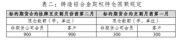鑄造鋁合金期權(quán)合約中,合約月份涉及的標(biāo)的期貨持倉(cāng)量閾值為10000手(單邊)。